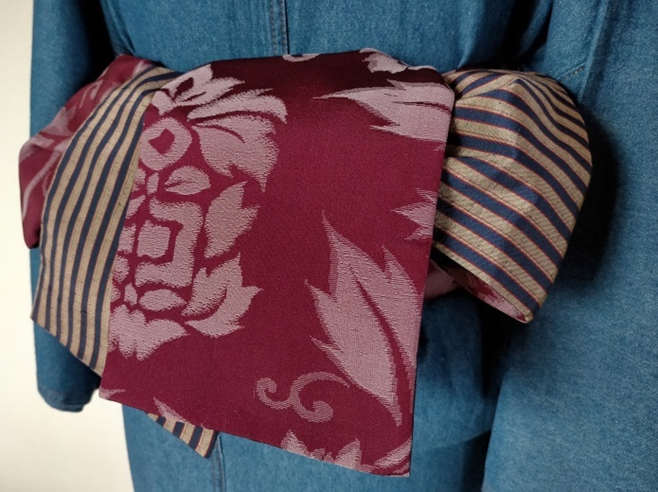 着物をリメイクしたリバーシブルで使える半幅帯。